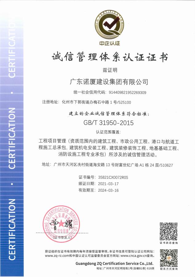廣東諾廈建設(shè)集團(tuán)有限公司是諾廈集團(tuán)的核心企業(yè),具備國家房屋建筑工程施工總承包壹級、市政工程施工總承包壹級、港口與航道工程總承包、建筑裝修裝飾工程、消防設(shè)施工程、地基基礎(chǔ)工程、機(jī)電設(shè)備安裝工程、體育場地設(shè)施工程、建筑智能化工程、河湖整治工程、水利水電工程等資質(zhì)。......